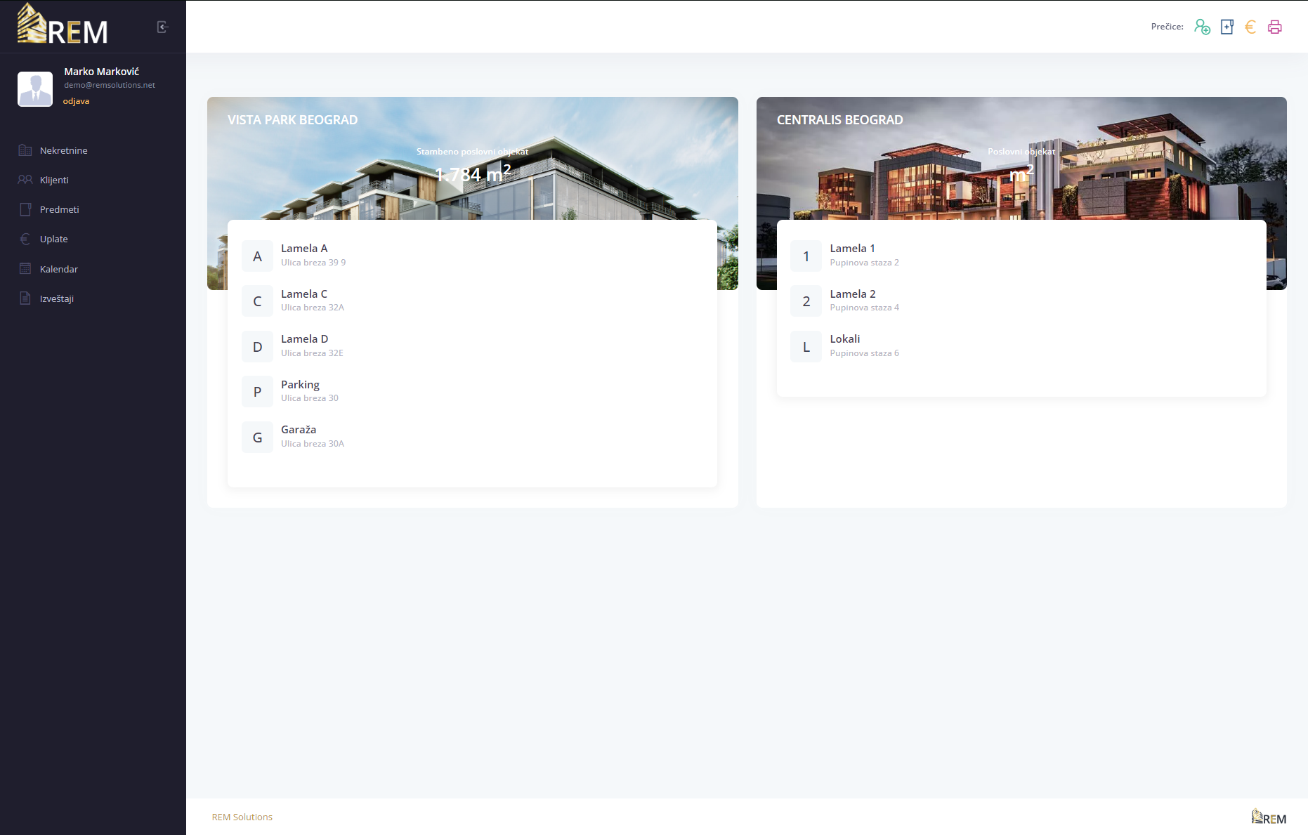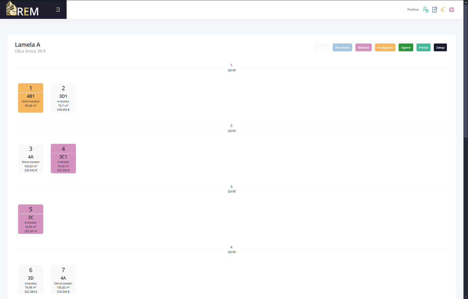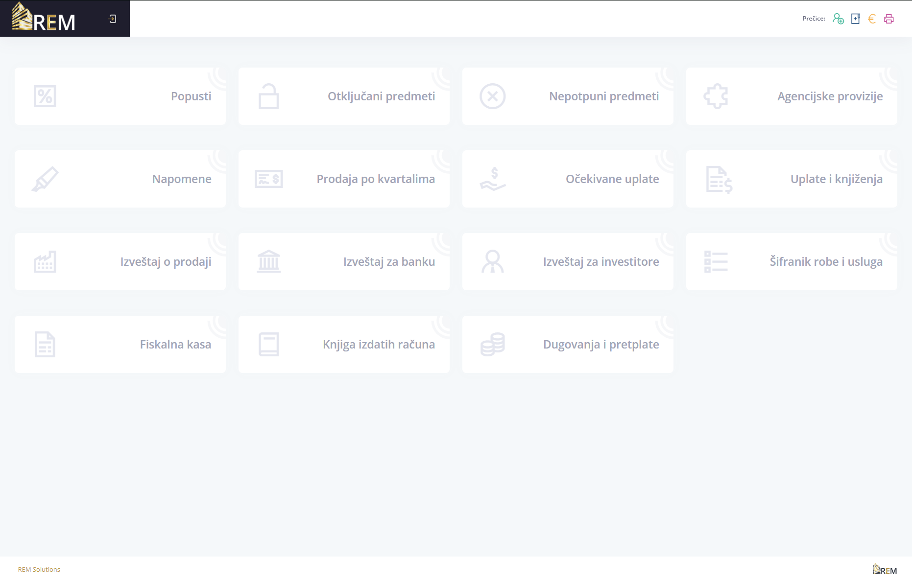 REM je savremeno softversko rešenje koje omogućava upravljanje celokupnim procesom prodaje nekretnina, oslanjajući se na jasno definisane ključne elemente: učesnike, procedure i dokumenta. Uz širok spektar funkcionalnosti, REM unapređuje efikasnost prodajnog procesa i kvalitet rada vašeg tima. Fleksibilan i prilagodljiv, REM se može koristiti za različite vrste nekretnina, čineći ga idealnim rešenjem za modernizaciju vašeg poslovanja.